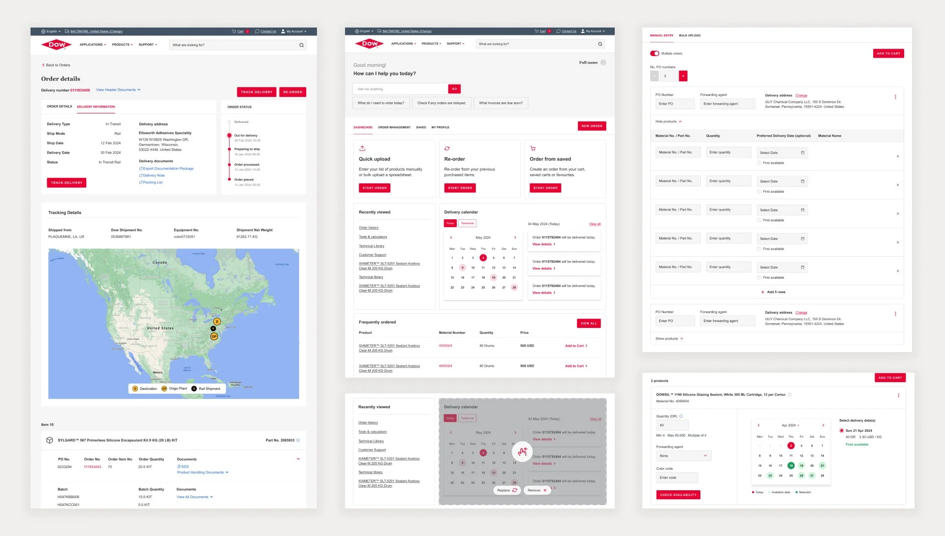 B2B order management platform for DOW Chemical, a global leader in materials science. I designed and prototyped multiple design concepts to balance quick wins with future solutions. Given the platform’s global scale and multiple micro-sites, establishing a unified design system was essential for consistency.